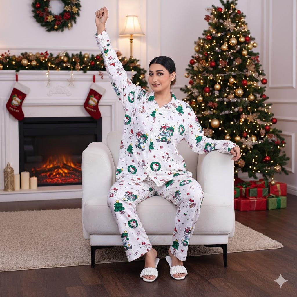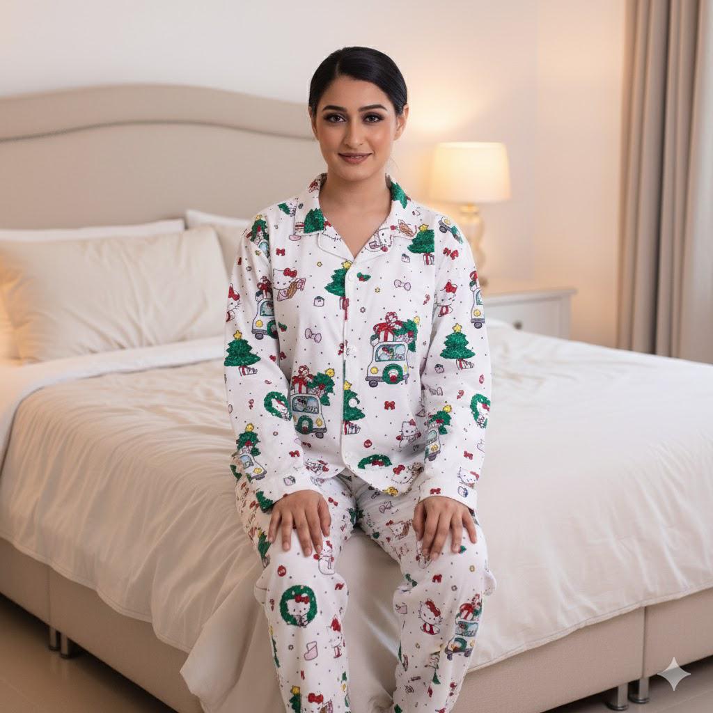 Introducing our Two-Piece Hello Kitty Desing of Flannel Pajama Sets, the perfect choice for your cozy nights and relaxing mornings. Crafted with soft and breathable flannel, these sets offer both comfort and style. The classic design adds a touch of timeless charm to your loungewear, making it a delightful night suit.
