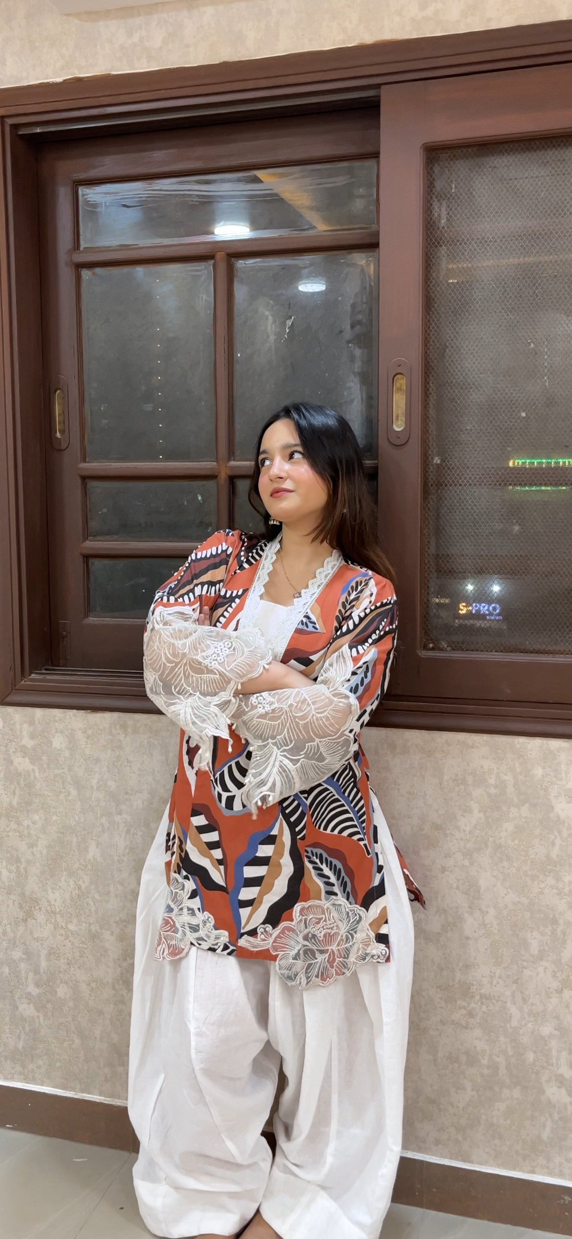 Elevate your wardrobe with this cotton embroidered 2-piece co-ord set. The vibrant printed shirt is beautifully accented with delicate embroidery and lace details on the sleeves and neckline, adding a touch of sophistication. Paired with a classic white farshi shalwar, this outfit blends traditional charm with modern design. Ideal for festive gatherings, casual outings, or semi-formal events, this ensemble ensures both comfort and elegance in every wear.