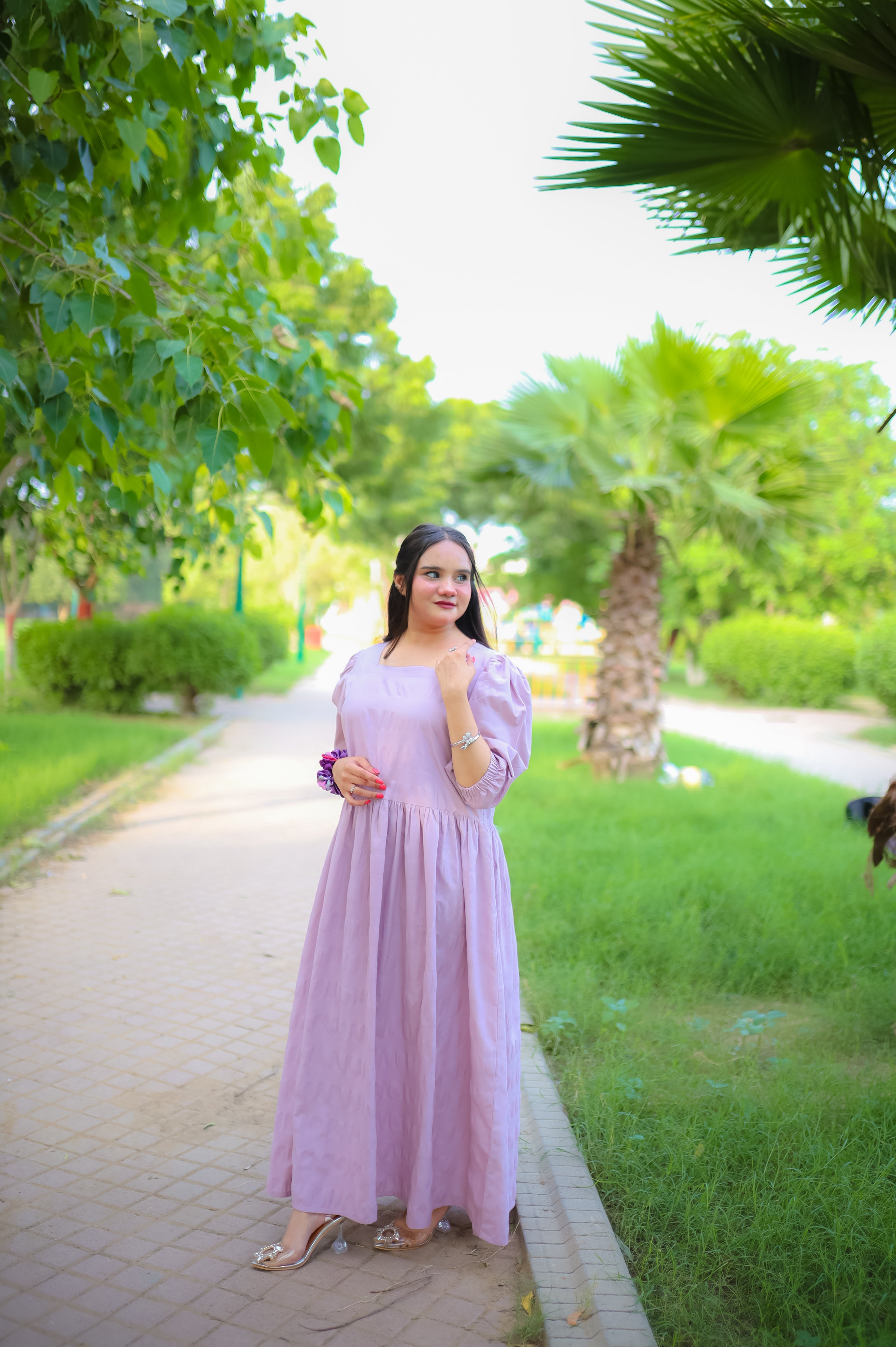 The square neckline and gently puffed sleeves add a touch of femininity, while the flowy A-line silhouette drapes beautifully to flatter every body shape. Its airy design makes it ideal for casual outings, park strolls, brunches, or even cozy get-togethers. Pair it with sandals for a relaxed daytime look, or dress it up with heels and accessories for a more refined appearance.